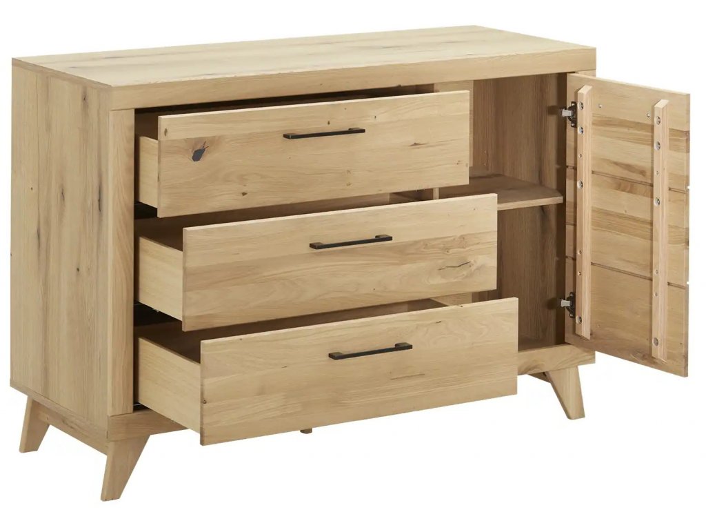 Jedná se o nový a kvalitní německý výrobní program, který vás doslova pohltí svou širokou nabídkou a elegantním designem. Dětský ú studentský program navazuje na a zároveň rozšiřuje nový výrobní program Berlin divoký dub masiv. Přední části nábytku jsou vyrobeny z masivního dubového dřeva ošetřeného přírodní voskovou politurou. Korpusy jsou z kvalitní tvrzené melaminované dřevotřísky ve stejném dekoru. Nábytek je vybaven plynulým a tichým dovíráním dvířek a šuplíků, úchytky jsou kovové lakované. U nábytku je použito kvalitní a bezproblémové kování od předních světových výrobců. K šatním skříním a komodám je možné dokoupení vysokých nožiček skandinávského typu v ceně 2.499 Kč + 1.899 Kč. U nábytku je konstrukčně možné i obrácené sestavení.