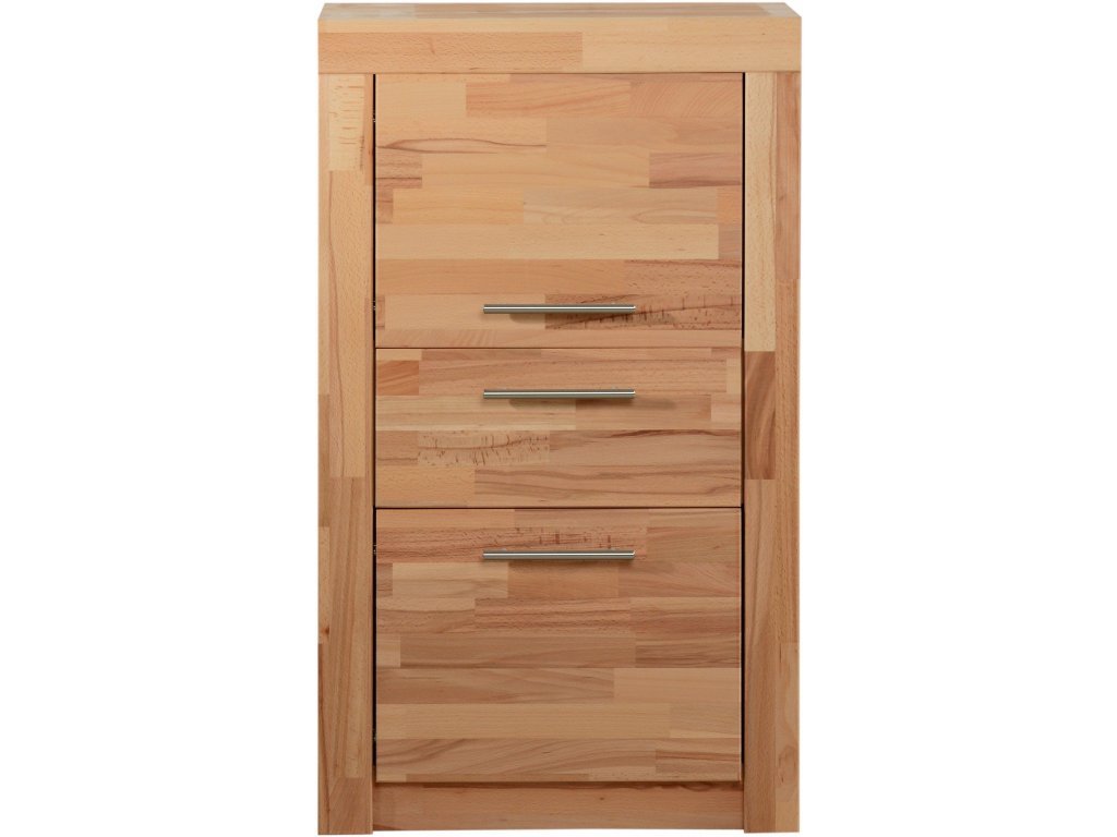Přední části nábytku jsou vyrobeny z masivního jádrového buku a korpusy z melaminované dřevotřísky odolné proti poškrábání. Jedná se o prvotřídní německý výrobek. Spojovací materiál je od kvalitní firmy Hettich. Úchytky jsou kovové a lakované. Vše je včetně kompletního spojovacího a upevňovacího materiálu. Skleněné fochy je možné osadit diodovým osvětlením, které můžete přikoupit zde. Přední části v provedení jádrový buk masiv jsou ošetřeny kvalitní voskovou politurou, která zajišťuje nábytku dlouhou životnost a příjemný design.