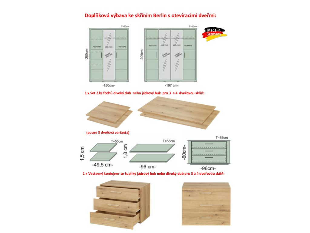 Ke skříni je možné dokoupení vnitřního vestavného kontejneru se 3 ks zásuvek na kolejničkách v ceně 8.499 Kč + setu 2 ks menších fochů v ceně 1.299 Kč a setu 2 ks větších fochů v ceně 1.999 Kč viz. poslední foto (případný zájem prosíme uvést do poznámky v objednávce).