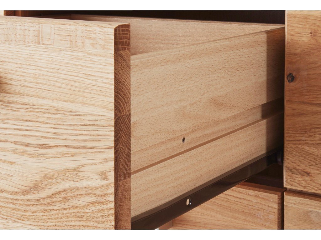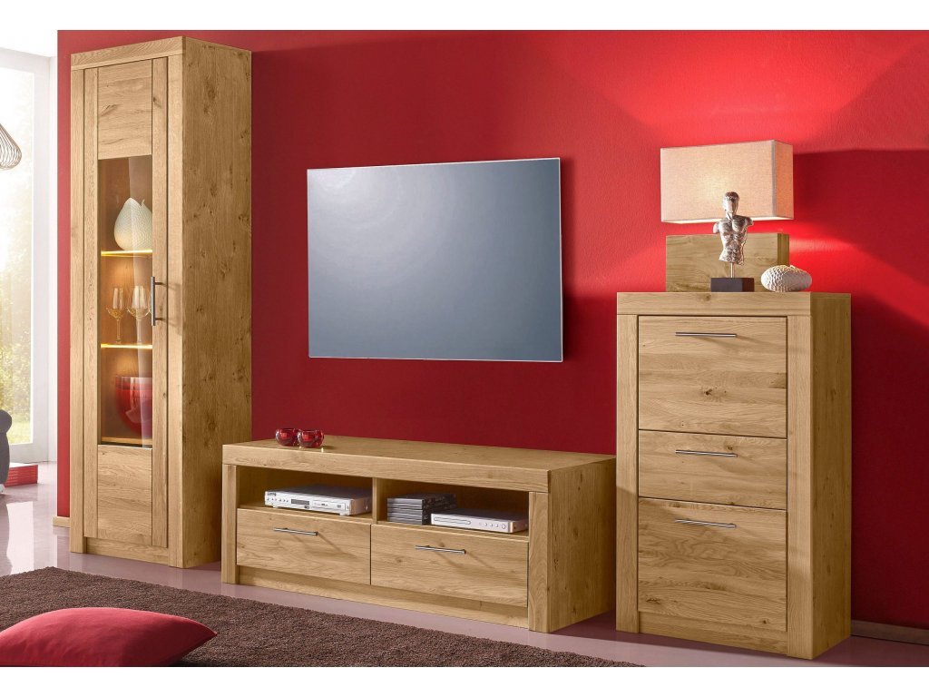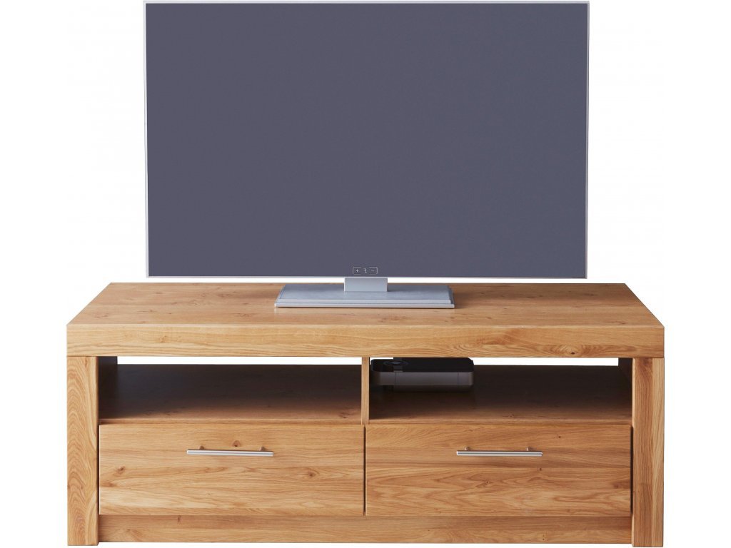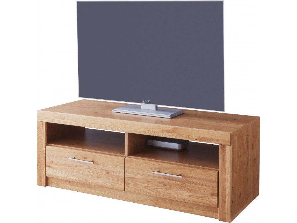 Korpusy televizního stolku jsou vyrobeny z melaminované dřevotřísky odolné proti poškrábání a přední části jsou z masivního dubu. Jedná se o originální německý výrobek. Úchytky jsou kovové a lakované (možnost výběru i jiných úchytek než jsou uvedeny na obrázku). Spojovací materiál je od kvalitní firmy Hettich. Přední části v provedení dub masiv jsou ošetřeny kvalitní voskovou politurou, která zajišťuje nábytku dlouhou životnost a příjemný design.